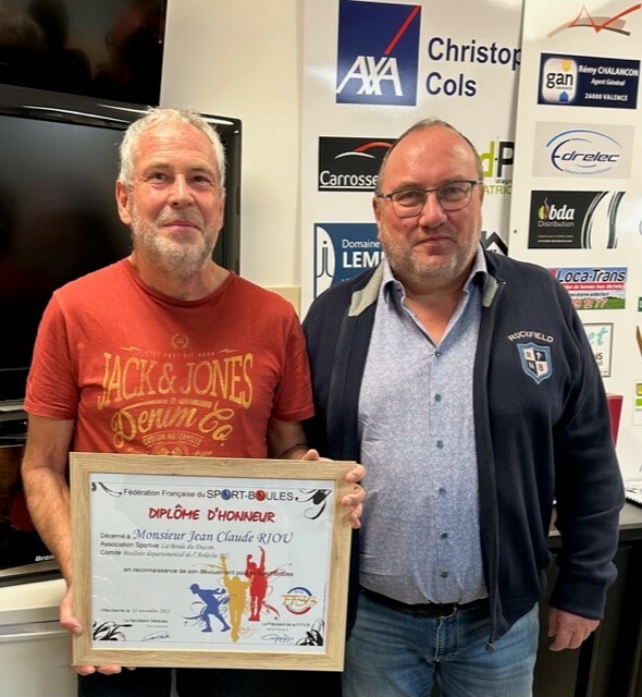 A l'issue de cette réunion, Jean-Claude Riou s'est vu décerner un diplôme signé du président de la FFB pour récompenser son engagement dans la vie du club en tant que trésorier et homme orchestre. Tous les licensiés et adhérents ont applaudi cette initiative bien méritée quant au principal intéressé, il n'a pas manqué de marquer sa surprise.
